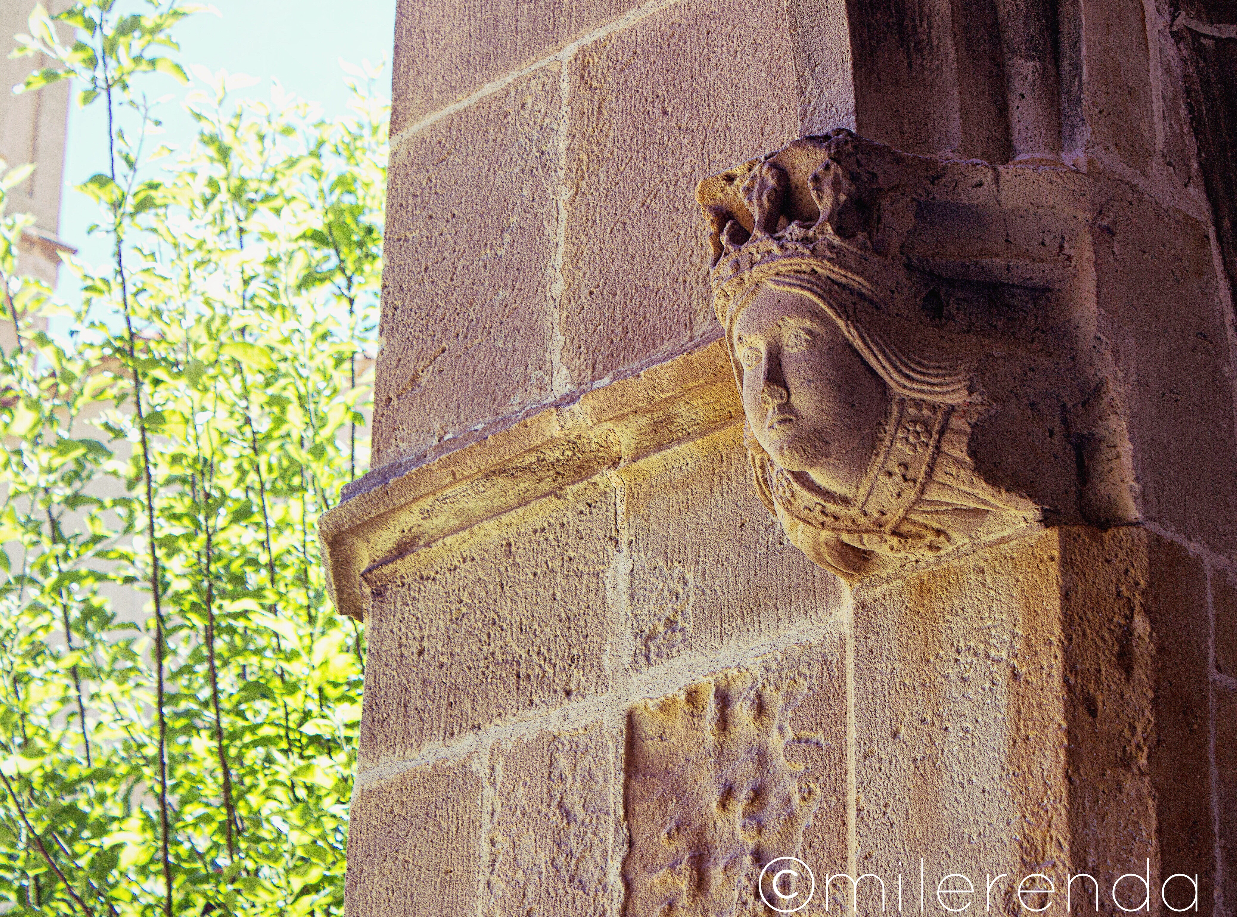 Entre los capiteles del monasterio pueden verse los bustos de los Reyes Católicos,